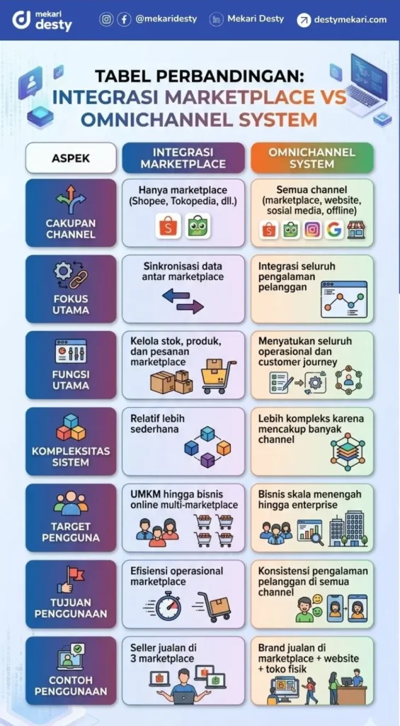 Tabel perbandingan integrasi marketplace vs omnichannel system