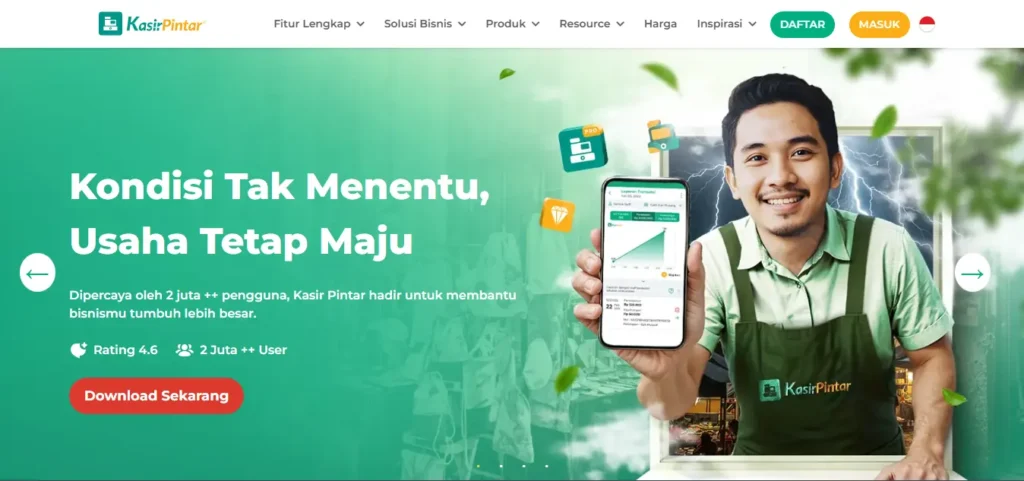 - Fitur utama meliputi penjualan, stok, laporan, integrasi marketplace, & pembayaran digital