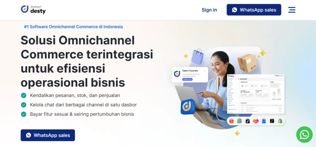Mekari Desty adalah software omnichannel marketplace yang membantu bisnis mengelola penjualan online dari berbagai channel dalam satu platform terintegrasi.