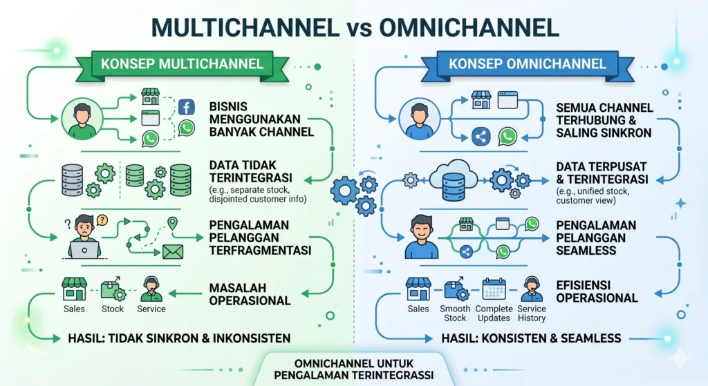 B. Perbedaan omnichannel vs multichannel