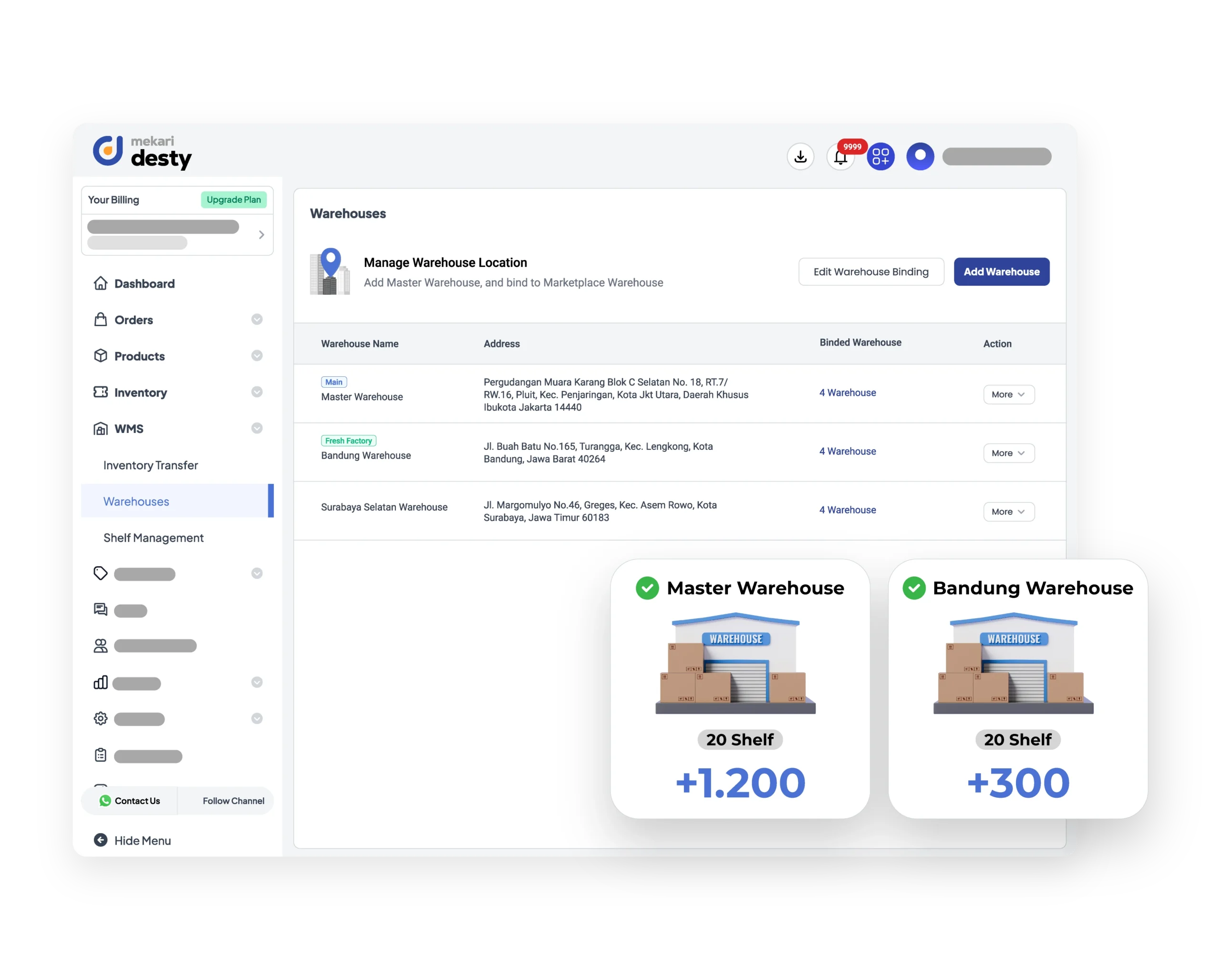Kelola seluruh lokasi gudang marketplace dan fulfillment dalam satu sistem