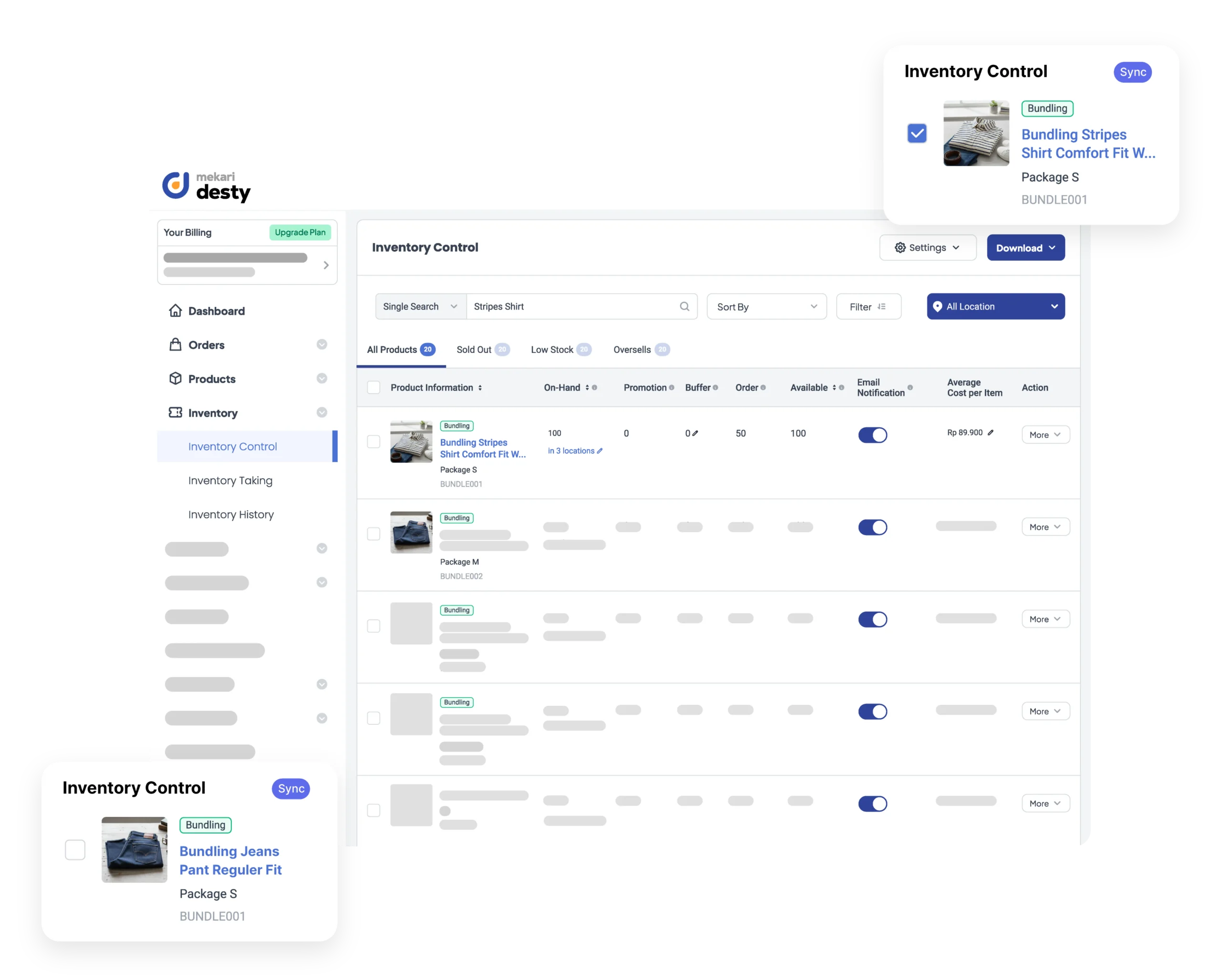 Pastikan stok selalu akurat dan siap jual dengan sinkronisasi otomatis dari gudang hingga marketplace